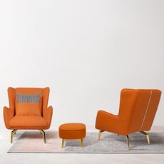 거실 1인용방수쇼파 인조가죽소파 편안한 착석감의 1인쇼파, 오렌지+스툴