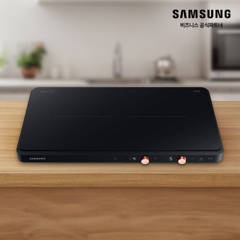 삼성전자 2구 인덕션 은 전원 코드만 연결해 설치 없이 사용할 수 있는 프리스탠딩 타입 제품이며 두 개의 인덕션 화구로 동시에 조리와 보온이 가능하고 최대 3.3 kW 고화력과 파워부스트 기능으로 빠르게 요리할 수 있고 다이얼과 LED 디스플레이로 간편하게 화력을 조절할 수 있으며 슬림한 블랙 디자인과 안전 기능이 적용된 주방용 조리기기이다