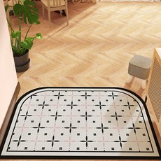 노르딕 플라워 타일 레더 카페트, 블랙, 1개는 블랙 색상의 플라워 패턴이 들어간 타일형 카페트로 거실이나 침실 바닥에 놓아 인테리어 효과를 높이고 부드러운 촉감과 미끄럼 방지 처리된 뒷면으로 실내 공간을 편안하게 꾸며주는 장식용 바닥 매트입니다.