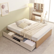 니드 수납형 서랍형 침대프레임 SSQ, 오크워시/4단서랍형