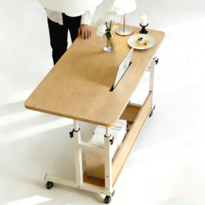 UniNest E0급 사이드 테이블은 원목 마감으로 고급스러운 느낌을 주며 1인용 컴퓨터, 침대 옆 보조 책상 등 다양한 용도로 사용할 수 있고 높이 조절과 이동이 가능하여 편리하다.